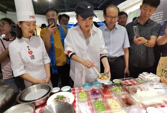 在“天賦河套”總部基地,烏蘭圖雅對“天賦河套”優(yōu)質(zhì)農(nóng)產(chǎn)的12家企業(yè)產(chǎn)品及國家認(rèn)證的地理標(biāo)志性農(nóng)畜產(chǎn)品進(jìn)行了重點介紹,并現(xiàn)場直播了面塑制作、河套面粉現(xiàn)場拉拉面、面筋制作等,同時與河套爬山調(diào)、烏拉特民歌等非遺項目傳承人及烏蘭牧騎隊員現(xiàn)場互動。