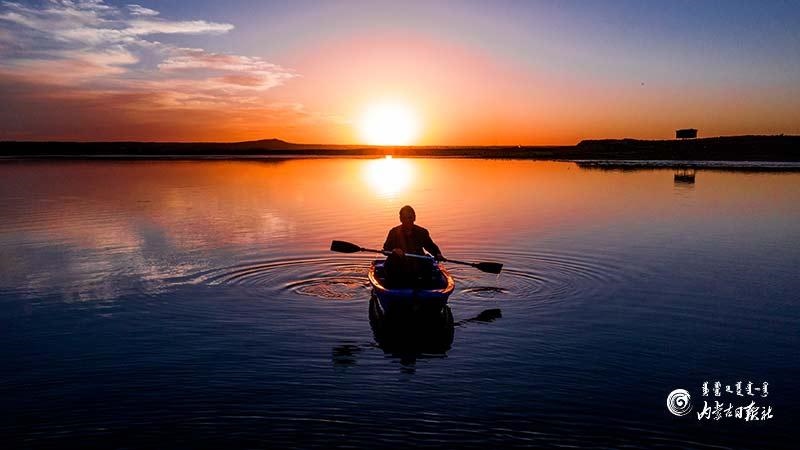 山氣日夕佳,飛鳥(niǎo)相與還。盛夏時(shí)節(jié),鄂爾多斯遺鷗國(guó)家級(jí)自然保護(hù)區(qū)大批夏候鳥(niǎo)、留鳥(niǎo)進(jìn)入育雛季,成千上萬(wàn)只候鳥(niǎo)時(shí)而盤(pán)旋云端、時(shí)而靜謐游憩。夕陽(yáng)西下,水天一色、百鳥(niǎo)爭(zhēng)鳴,蔚為壯觀(guān)。