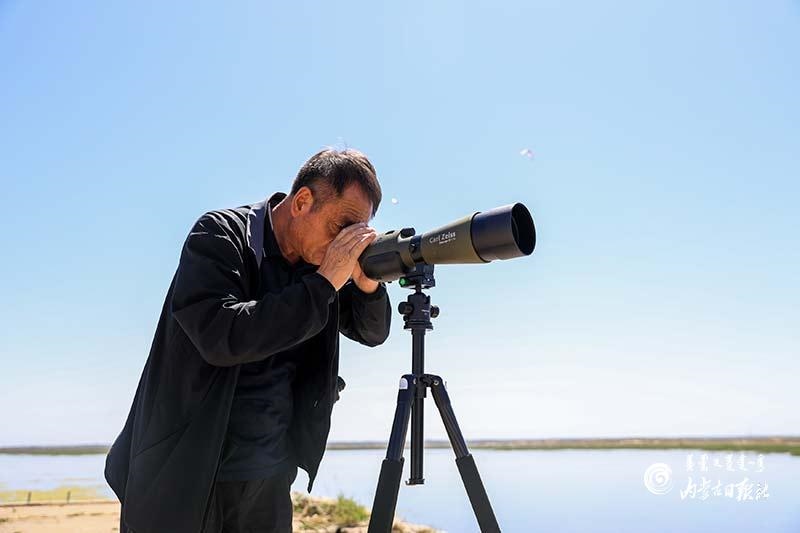 烈日下 ,通過(guò)高倍望 遠(yuǎn)鏡觀(guān)察鳥(niǎo)類(lèi)活動(dòng)情況。