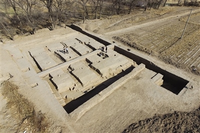 11月10日,航拍呼和浩特市玉泉區(qū)沙梁子村的西漢中晚期疑似大型糧倉建筑基址發(fā)掘現(xiàn)場。近日,內(nèi)蒙古文物考古研究所與中山大學(xué)組成的聯(lián)合考古隊(duì)在沙梁子村揭露一處大型夯土高臺建筑基址,根據(jù)出土的磚瓦材料及夯臺建筑的形制推測,可能是一座西漢時期的大型倉儲建筑,距今約2000多年。這是我國迄今發(fā)現(xiàn)規(guī)模最大的漢代單體夯土高臺建筑。(內(nèi)蒙古日報記者 孟和朝魯 實(shí)習(xí)生 郭明午 攝)