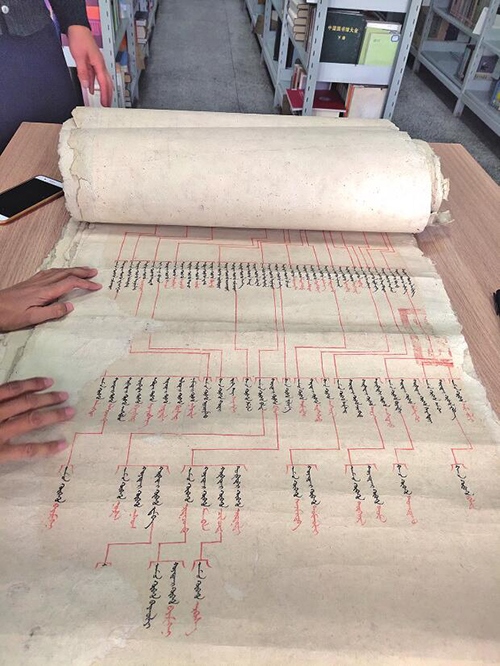 內(nèi)蒙古社會科學(xué)院圖書館館長王智說:“這里的寶貝有很多,經(jīng)書、圣旨、家譜,種類豐富且保存較為完整。館內(nèi)現(xiàn)有藏書26萬冊,包括漢文、蒙古文、滿文、外文等各類圖書。其中,蒙古文古籍6280種3萬余冊,約占全國各圖書館蒙古文古籍收藏種類的50%,且多為木刻原版或手抄本。單是這一個數(shù)字,就是其它圖書館無法匹及的?!?/p>