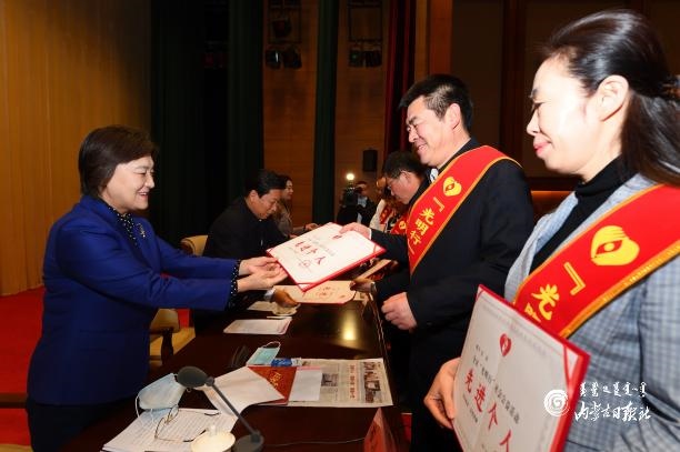 12月14日,全區(qū)“光明行”社會(huì)公益活動(dòng)總結(jié)表彰會(huì)在呼和浩特舉行。自治區(qū)主席、紅十字會(huì)名譽(yù)會(huì)長(zhǎng)、全區(qū)“光明行”社會(huì)公益活動(dòng)組委會(huì)主任委員布小林為受表彰代表頒發(fā)榮譽(yù)證書。內(nèi)蒙古日?qǐng)?bào)記者 金泉 攝