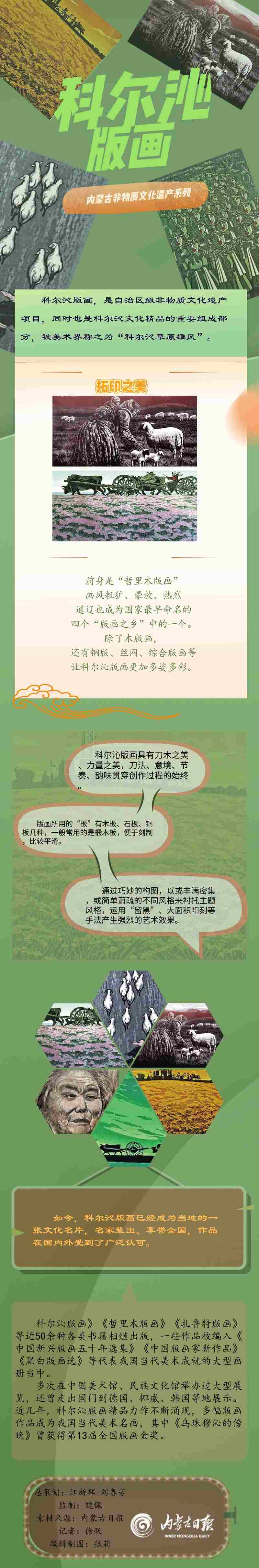 中國(guó)木刻版畫已有上千年史,自二十世紀(jì)三十年代起,創(chuàng)作版畫經(jīng)魯迅先生提倡后取得了巨大發(fā)展。內(nèi)蒙古科爾沁版畫繼承發(fā)揚(yáng)中國(guó)版畫的精髓,兼收并蓄,創(chuàng)新發(fā)展,以雄渾、純樸、大氣、高雅而著稱,具有鮮明的草原特色。