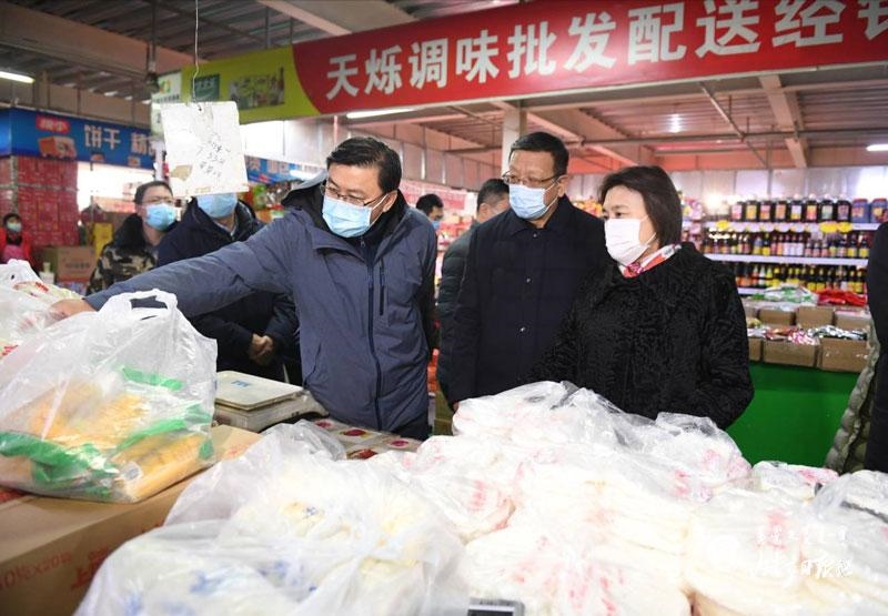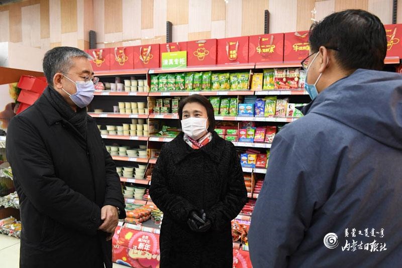 1月17日上午,自治區(qū)黨委副書記、自治區(qū)主席布小林在呼和浩特市維多利喜悅匯超市檢查生活物資供應(yīng)、食品安全和疫情防控情況。內(nèi)蒙古日?qǐng)?bào)記者 韓卿立 攝