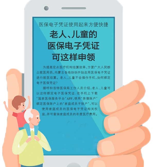 為提高定點醫(yī)療機構結算效率,方便廣大人民群眾就醫(yī)用藥,內(nèi)蒙古各地紛紛開始啟用醫(yī)保電子憑證進行就醫(yī)結算。老人兒童不會操作手機,如何綁定電子醫(yī)保憑證?