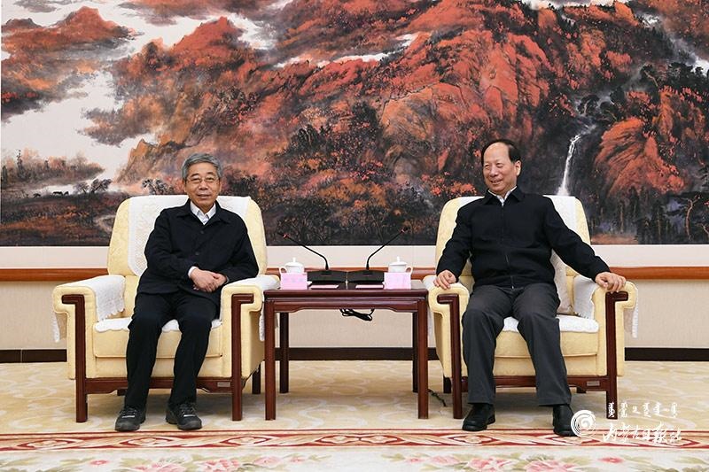 3月18日,自治區(qū)黨委書記、人大常委會主任石泰峰在呼和浩特會見教育部部長陳寶生一行。