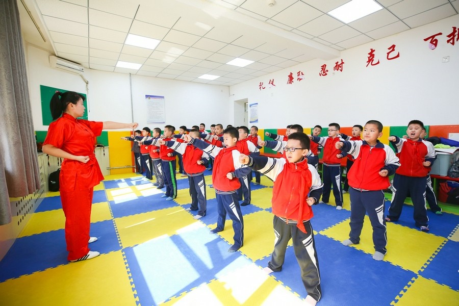 夏艷老師正在教同學們練習武術(shù)基本功 彭瑞誠 攝影