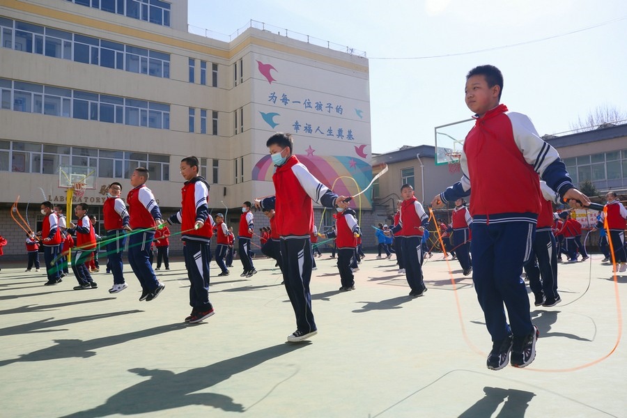 “為每一位孩子的幸福人生奠基體現(xiàn)在多個方面,身體健康是基礎(chǔ),學校結(jié)合實際合理安排體育課程,‘以體育人’,為學生的全面發(fā)展奠基?!焙艉秃铺厥械谒闹袑W副校長婁淑華說。