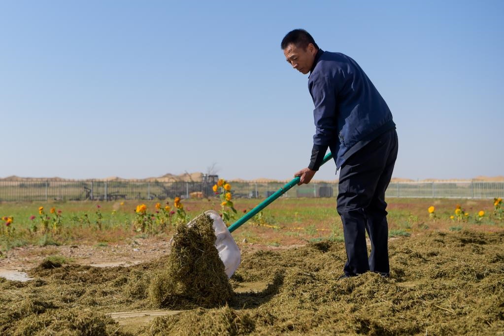 作為綠能碳匯(集團(tuán))有限公司綜合部部長,馬天景和他的團(tuán)隊(duì)一直關(guān)注著這些幼苗的長勢。“這些牧草都是今年夏天剛剛試驗(yàn)種植的,目的是檢驗(yàn)不同品種的越冬能力,為明年推廣種植積累經(jīng)驗(yàn)。”馬天景說,未來這些牧草都將供應(yīng)給光伏基地東側(cè)的肉牛標(biāo)準(zhǔn)化養(yǎng)殖場。