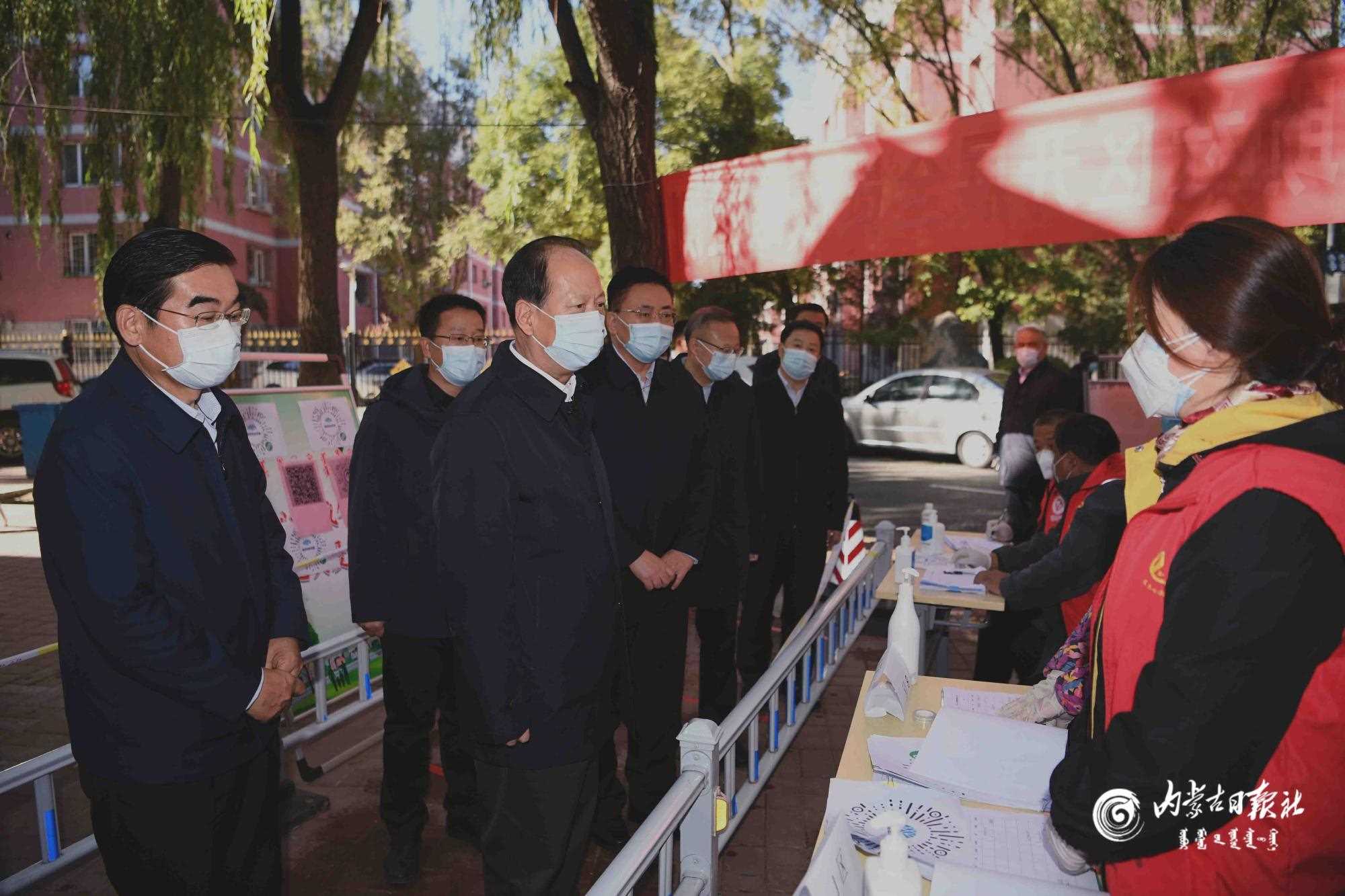 10月26日,自治區(qū)黨委書記、人大常委會主任石泰峰在學(xué)府花園小區(qū),檢查入口健康碼查驗(yàn)、體溫檢測、值班值守等情況,并來到核酸檢測采樣點(diǎn),仔細(xì)察看采樣登記流程。內(nèi)蒙古日報社融媒體記者 袁永紅 攝