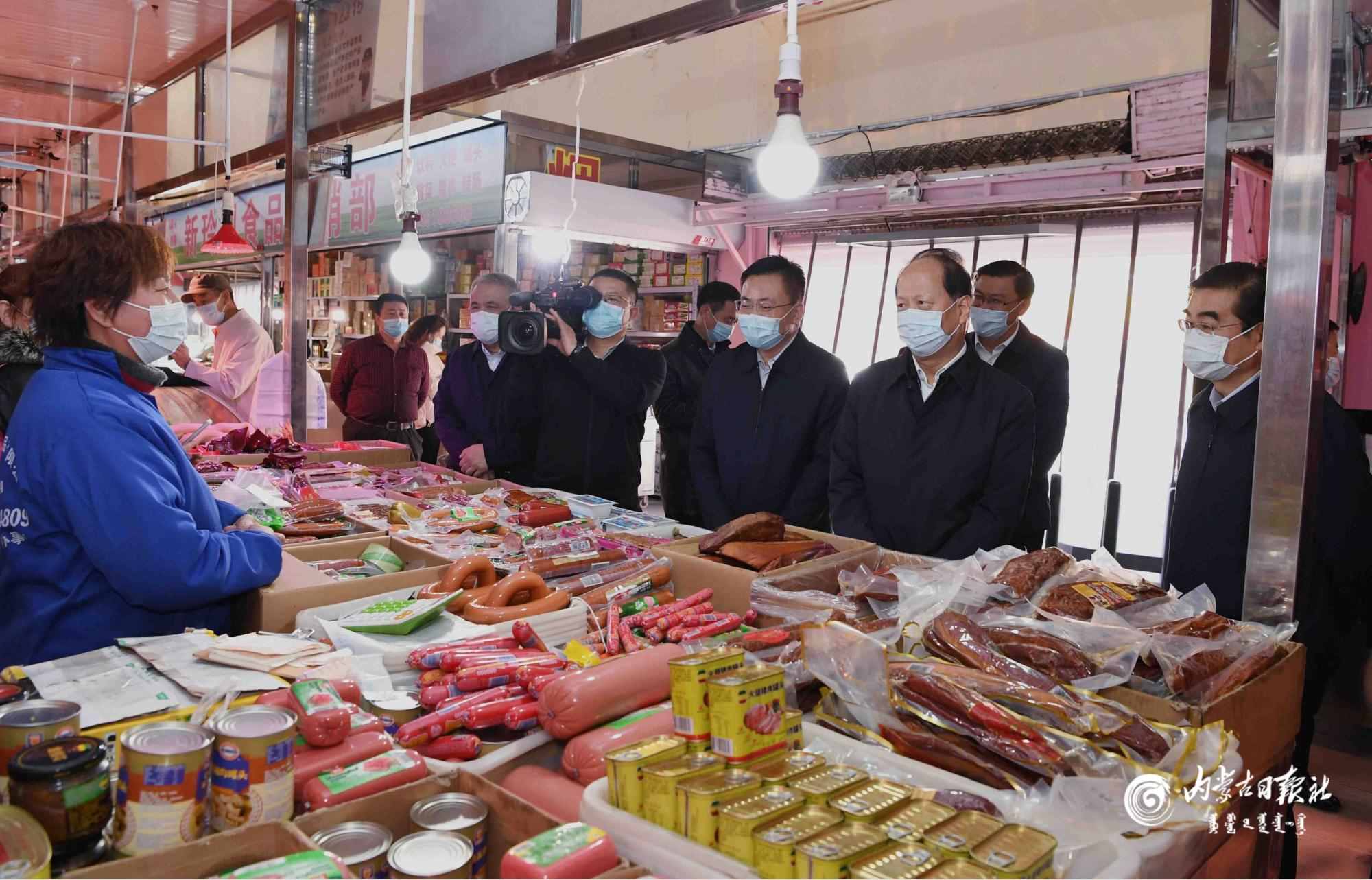 10月26日,自治區(qū)黨委書記、人大常委會主任石泰峰來到東瓦窯農(nóng)副產(chǎn)品批發(fā)市場,與購物市民一起接受體溫檢測。在水產(chǎn)海鮮和肉食大廳,他認(rèn)真察看防控措施落實(shí)情況。內(nèi)蒙古日報社融媒體記者 袁永紅 攝