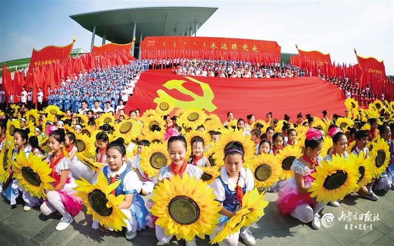 “永遠(yuǎn)跟黨走”——慶祝中國共產(chǎn)黨成立100周年內(nèi)蒙古自治區(qū)(呼和浩特地區(qū))群眾性文化活動在呼和浩特市民族團(tuán)結(jié)寶鼎廣場啟動。內(nèi)蒙古日報(bào)社融媒體記者 王曉博 攝