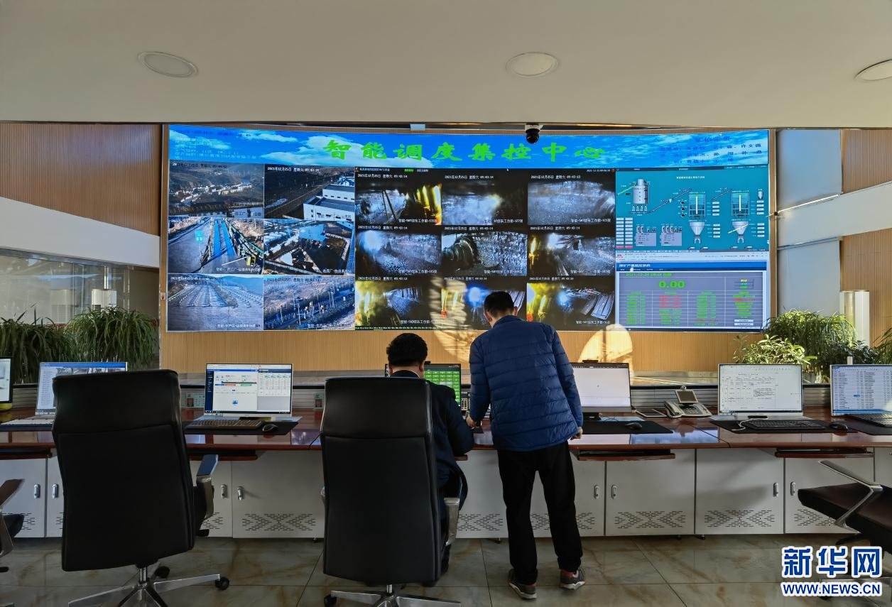 麻地梁煤礦地面智能調(diào)度集控中心的大屏幕上,可以實(shí)時查看煤礦各個生產(chǎn)環(huán)節(jié)的狀況。新華網(wǎng) 楊騰格爾攝