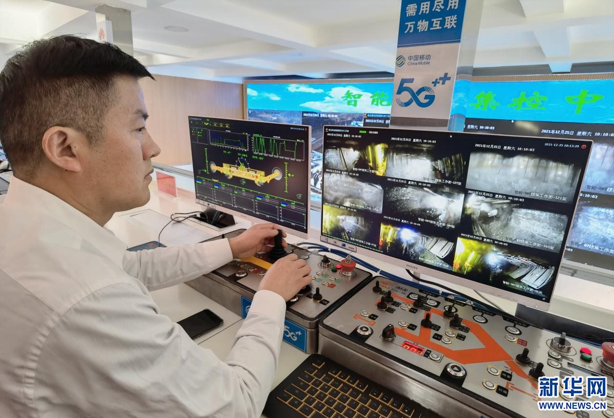 在智能調(diào)度集控中心,1名井下采煤掘進(jìn)機(jī)司機(jī)坐在辦公室里,看著顯示器上實(shí)時回傳的井下畫面,手握操縱桿遠(yuǎn)距離控制井下的采煤掘進(jìn)機(jī)進(jìn)行掘采。據(jù)介紹,智能集控中心僅需8個人,就可以幫助煤礦實(shí)現(xiàn)全年800萬噸產(chǎn)量。