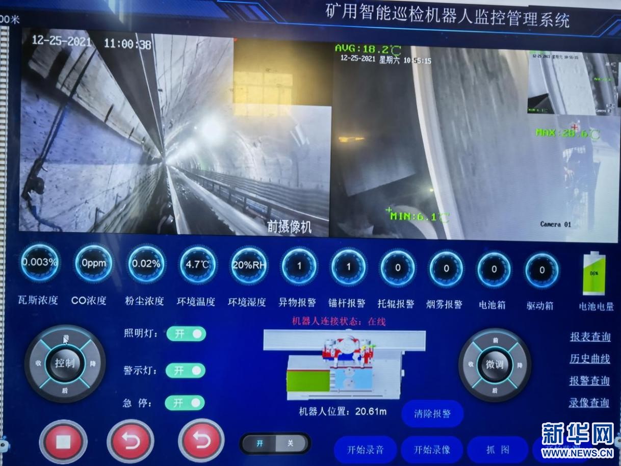 25日,在鄂爾多斯市麻地梁煤礦的輸煤傳送帶上,一臺礦用AI(人工智能機(jī)器人)“打工人”身著藍(lán)色“工衣”,行進(jìn)在運(yùn)輸皮帶上,它依靠一雙10CM大的“眼睛”,敏銳觀察著皮帶上源源不斷傳送的煤炭,并檢查異物。它身上安裝了高精度傳感器,可以實(shí)時將瓦斯、二氧化碳、粉塵濃度傳回麻地梁煤礦智能調(diào)度集控中心。