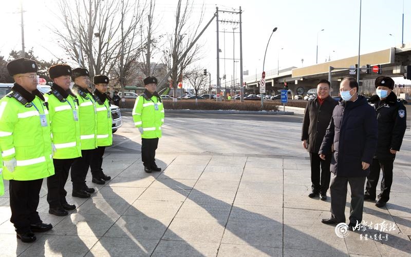 1月31日,自治區(qū)黨委書(shū)記、人大常委會(huì)主任石泰峰,走訪(fǎng)呼和浩特市公安局交警支隊(duì)賽罕大隊(duì)九中隊(duì)崗?fù)?,看望慰?wèn)一線(xiàn)執(zhí)勤交警。內(nèi)蒙古日?qǐng)?bào)社融媒體記者袁永紅攝