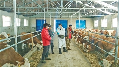 興安盟科技特派員王強(右二)對養(yǎng)殖戶進行現(xiàn)場指導。