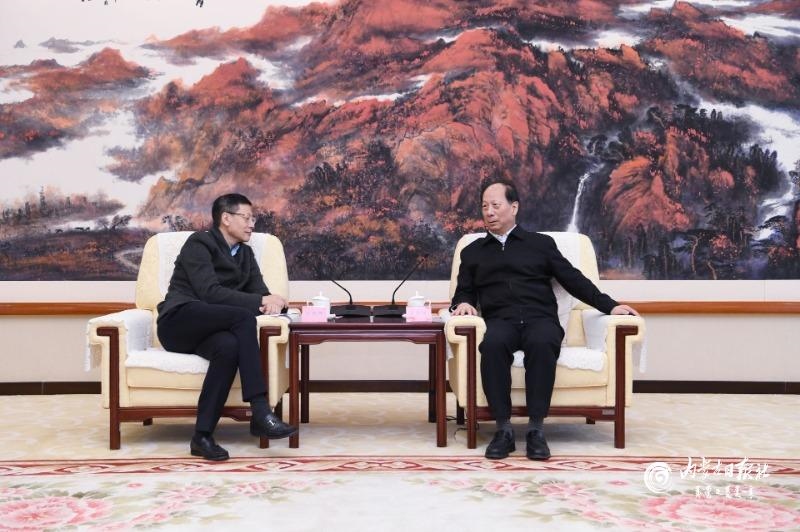 自治區(qū)領(lǐng)導(dǎo)于立新、張韶春及有關(guān)部門(mén)負(fù)責(zé)同志參加會(huì)見(jiàn)。(內(nèi)蒙古日?qǐng)?bào)社融媒體記者劉曉冬)