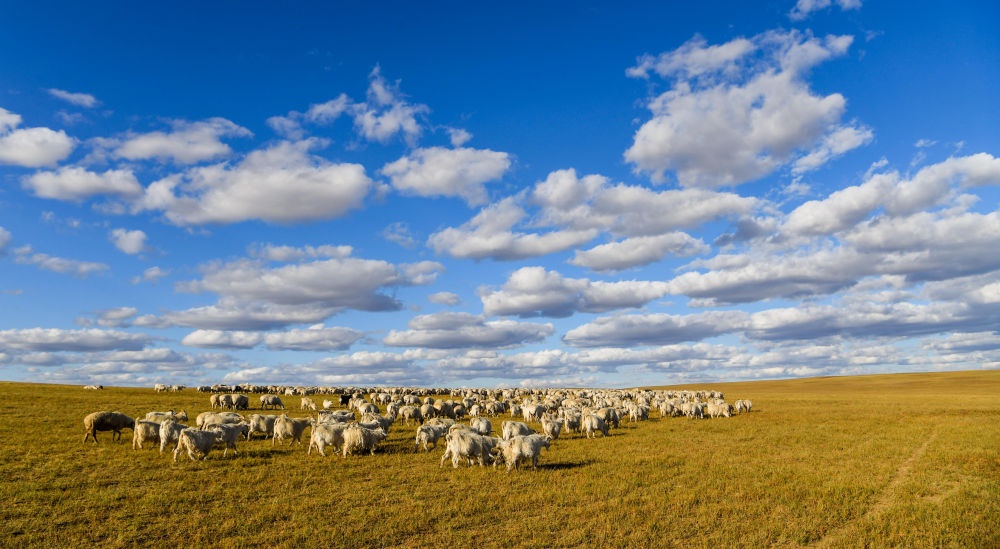 內蒙古錫林浩特市寶力根蘇木牧民瑪吉格的兒子鋼蘇格拉在草原上放羊(2017年9月16日攝)。新華社記者連振攝