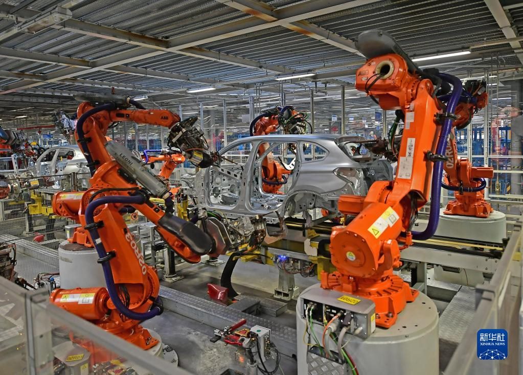 2022年2月16日,在華晨寶馬沈陽鐵西工廠車身車間,機器臂在焊接車身。新華社記者 楊青 攝