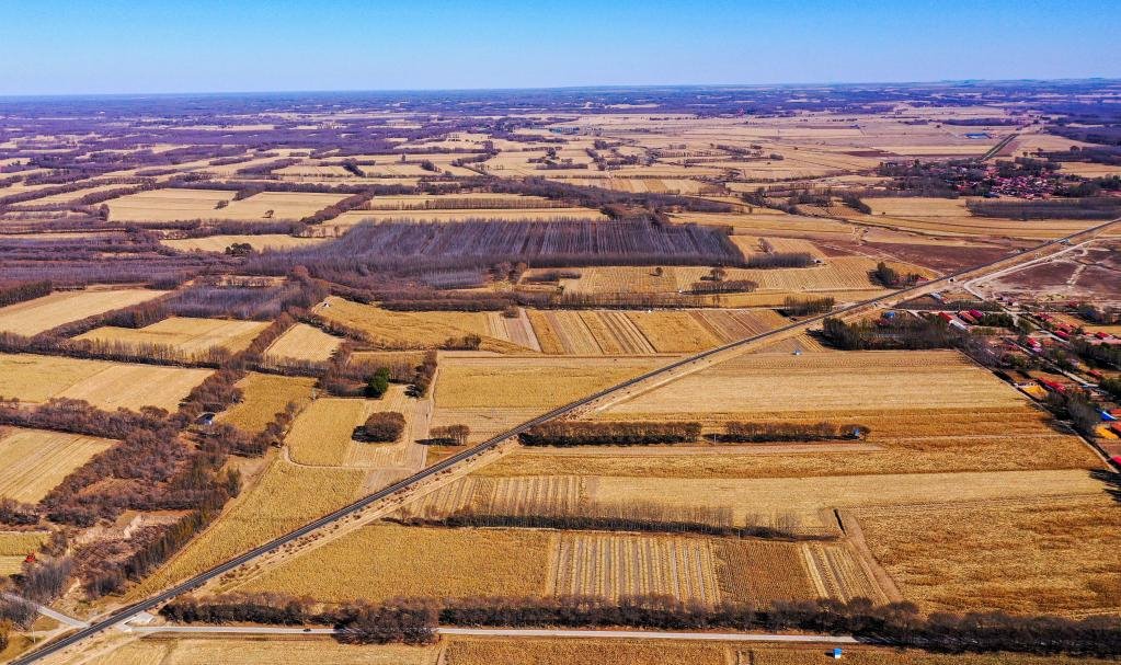 10月18日,這是通遼市奈曼旗新鎮(zhèn)正在收獲的玉米地。(無人機(jī)照片 新華社記者 連振 攝)