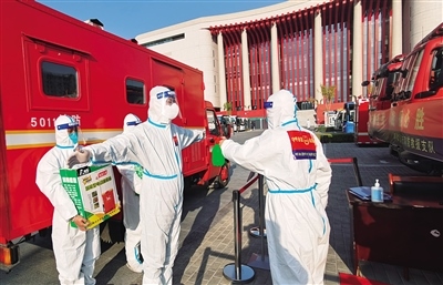 10月20日,在內(nèi)蒙古革命歷史博物館方艙醫(yī)院,呼和浩特市消防救援支隊(duì)消防員正在做個人消殺。本輪疫情發(fā)生以來,該支隊(duì)累計執(zhí)行消毒消殺任務(wù)300余次,完成室內(nèi)消殺近15萬平方米、消防安全線上檢查指導(dǎo)近500(家)次,為疫情防控貢獻(xiàn)消防力量。(內(nèi)蒙古日報社融媒體記者記者 懷特烏勒斯 通訊員 隆雪 攝)