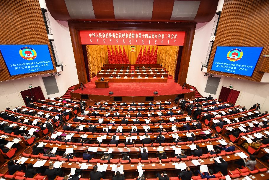 呼和浩特市政協(xié)十四屆二次會(huì)議開(kāi)幕大會(huì)現(xiàn)場(chǎng)。新華網(wǎng) 發(fā)(王劭凱 攝)