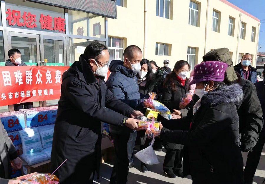 包頭市市場監(jiān)督管理局急困難群眾用藥之所急,解困難群眾用藥之所盼,組織10個旗縣區(qū)市場監(jiān)管部門發(fā)揮職能作用,協(xié)調(diào)全市各藥品經(jīng)營企業(yè)踴躍承擔社會責任,千方百計籌措當前防疫緊缺藥械,為全市近2萬名農(nóng)村牧區(qū)群眾送去防疫藥械愛心包,有效地緩解了包頭市農(nóng)村牧區(qū)困難群眾購藥遠、購藥難的實際問題。