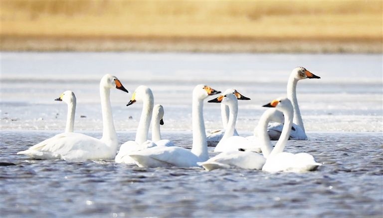 晶晶忍不住感嘆:“我和盈盈每次南飛或北遷,都要在沉湖‘打卡’,這個(gè)城市濕地已變成了小天鵝的‘會(huì)客廳’。前些年,這里可不好玩,用人類的話說(shuō),它‘曾經(jīng)滿目瘡痍,如今萬(wàn)鳥翔集、水草豐美’。”