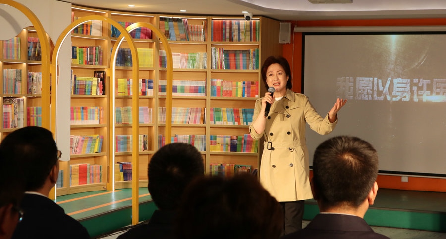 活動現(xiàn)場,大型交響詩畫《我愿以身許國》劇組的各位朗誦家們,深情演繹了大型交響詩畫《我愿以身許國》片段,并代表內(nèi)蒙古出版集團(tuán)為呼和浩特市賽罕區(qū)四千米社區(qū)捐贈圖書。