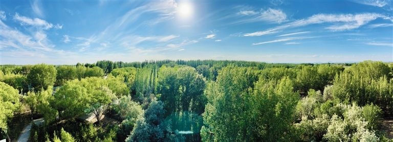 初夏時(shí)節(jié),位于巴彥淖爾市臨河區(qū)烏蘭圖克鎮(zhèn)的國營新華林場內(nèi)綠樹掩映、鳥鳴聲聲,鄰近的湖泊波光粼粼,微風(fēng)吹過,溫潤清涼。
