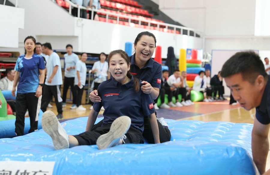 在隨后進(jìn)行的趣味運(yùn)動(dòng)會(huì)中,依次進(jìn)行了“陸地冰壺”“龜兔賽跑”“漢諾塔”等比賽項(xiàng)目。而在此前一天,羽毛球等項(xiàng)目也已開賽。賽場(chǎng)上,運(yùn)動(dòng)員們團(tuán)結(jié)一心,奮力拼搏。觀眾席上,“最強(qiáng)氣氛組”組成強(qiáng)大的啦啦隊(duì),為參賽選手們吶喊助威、加油鼓勁,共同凝聚團(tuán)隊(duì)的精神,一起分享比賽的快樂。