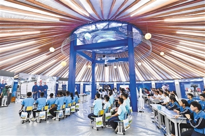 9月21日,120名中學(xué)生在阿拉善盟額濟(jì)納旗蒙古包地面課堂與空間站“同頻共振”,聆聽來自太空的聲音。內(nèi)蒙古日?qǐng)?bào)社融媒體記者 王磊 攝