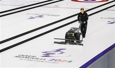 12月7日,走進(jìn)位于呼倫貝爾市海拉爾區(qū)的內(nèi)蒙古自治區(qū)冰上運(yùn)動訓(xùn)練中心冰球冰壺館,只見制冰師正在一遍又一遍地修整冰面,為即將到來的“十四冬”冰壺項(xiàng)目青年組比賽做準(zhǔn)備。