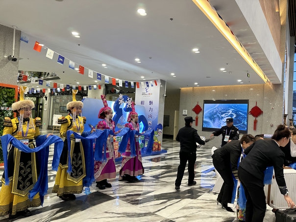劉欣說:“‘十四冬’期間,酒店接待服務(wù)站將實行24小時值班制度,為入住酒店的賓客提供醫(yī)療衛(wèi)生、交通保障等服務(wù)。同時,我們還在一樓大堂設(shè)置了‘十四冬’文創(chuàng)商場,商場內(nèi)展示有‘十四冬’文創(chuàng)產(chǎn)品及皮畫、太陽花等呼倫貝爾的非遺產(chǎn)品。”