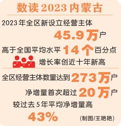 經(jīng)營(yíng)主體迸發(fā)出新活力。2023年,自治區(qū)市場(chǎng)監(jiān)管局出臺(tái)便捷市場(chǎng)準(zhǔn)入助力招商引資九條措施,取消、下放行政審批事項(xiàng)26項(xiàng),減少環(huán)節(jié)113個(gè)。個(gè)體工商戶設(shè)立登記等31項(xiàng)、589項(xiàng)具體項(xiàng)目實(shí)現(xiàn)全區(qū)通辦,申請(qǐng)人可以在“家門口”辦“外地事”,全區(qū)經(jīng)營(yíng)主體呈現(xiàn)數(shù)量增長(zhǎng)、結(jié)構(gòu)優(yōu)化、活躍度提升的良好態(tài)勢(shì)。2023年全區(qū)新設(shè)立經(jīng)營(yíng)主體45.9萬(wàn)戶,高于全國(guó)平均水平14個(gè)百分點(diǎn),增長(zhǎng)率創(chuàng)近十年新高;全區(qū)經(jīng)營(yíng)主體數(shù)量達(dá)到273萬(wàn)戶,凈增量首次超過20萬(wàn)戶,較過去五年平均凈增量高43%。在培育壯大經(jīng)營(yíng)主體上,集成金融、用工、創(chuàng)新等各領(lǐng)域15條硬措施落地,小微企業(yè)和個(gè)體工商戶總量分別增長(zhǎng)7.59%和7.3%。在激發(fā)經(jīng)營(yíng)主體創(chuàng)新活力上,推動(dòng)“一站式”服務(wù)進(jìn)園區(qū)、進(jìn)企業(yè),服務(wù)企業(yè)44761家,減免費(fèi)用、節(jié)約成本7154萬(wàn)元。“蒙”字標(biāo)認(rèn)證帶動(dòng)377種產(chǎn)品實(shí)現(xiàn)增值,知識(shí)產(chǎn)權(quán)質(zhì)押融資達(dá)到48.21億元。