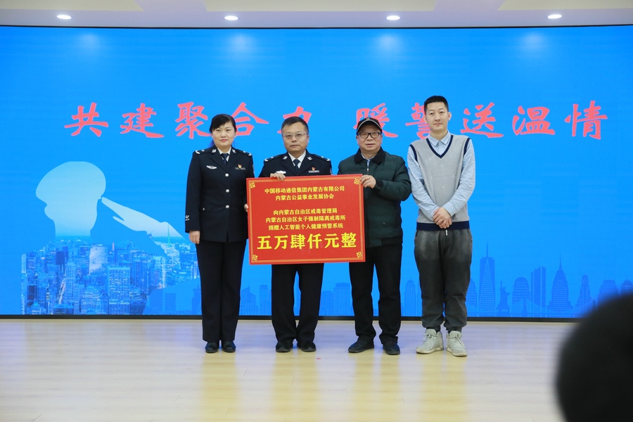 啟動儀式現(xiàn)場,中國移動通信集團內(nèi)蒙古有限公司、內(nèi)蒙古公益事業(yè)發(fā)展協(xié)會、內(nèi)蒙古萬里行公益協(xié)會、呼和浩特市賽罕區(qū)婦聯(lián)、內(nèi)蒙古中華傳統(tǒng)文化促進會、中華光華科技基金會等共建單位,向內(nèi)蒙古女子強制隔離戒毒所捐贈人工智能個人健康預(yù)警系統(tǒng)、公益版沖鋒棉衣、文創(chuàng)產(chǎn)品、女士保暖羊毛褲、書籍等愛心物資。內(nèi)蒙古女子強制隔離戒毒所向內(nèi)蒙古中醫(yī)醫(yī)院的劉瓊、王云娜、宋敏、李時卿等4位教授頒發(fā)了榮譽證書。