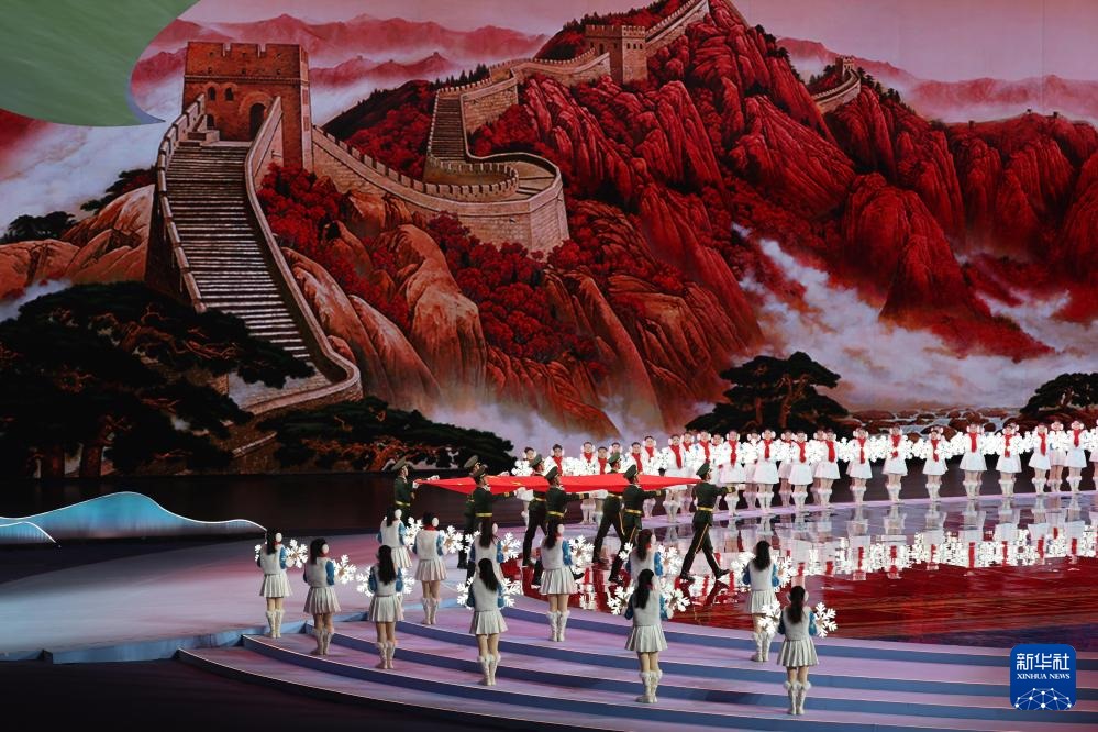 ??2月17日,中華人民共和國第十四屆冬季運(yùn)動(dòng)會(huì)會(huì)旗入場。新華社記者 連振 攝