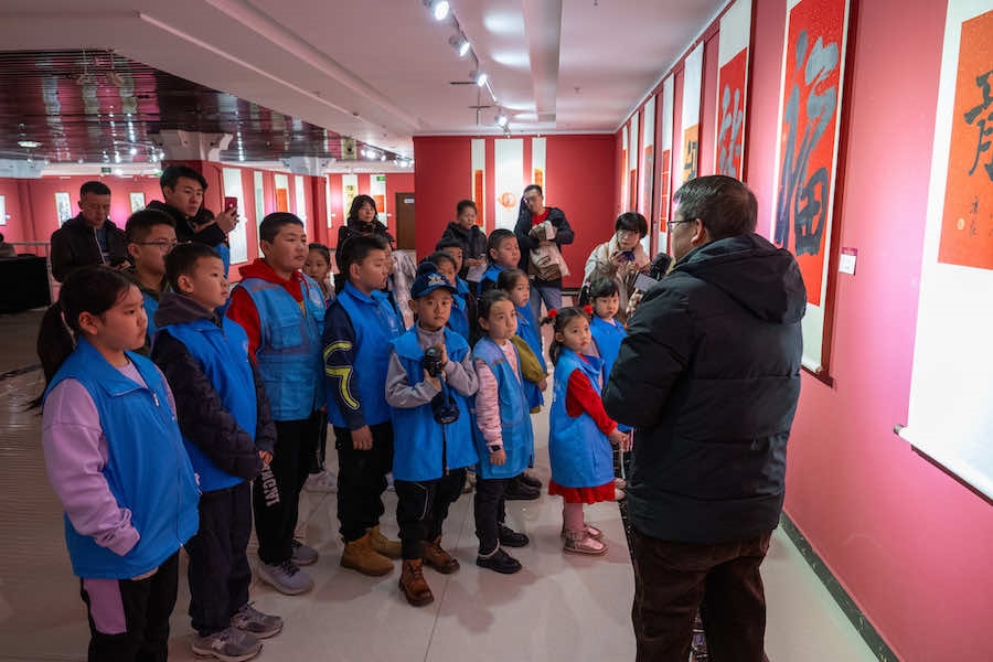 活動(dòng)現(xiàn)場(chǎng),20余名小朋友在家長(zhǎng)的陪同下,參觀了“藝美北疆 遇見(jiàn)青城”——呼和浩特市百福迎春賀歲作品展”和“藝美北疆 新春納?!薄厣夏?nbsp;水墨集中國(guó)書(shū)畫(huà)名家邀請(qǐng)展,小朋友在呼和浩特美術(shù)館老師的講解下,了解了春節(jié)貼“?!弊质俏覈?guó)民間由來(lái)已久的風(fēng)俗,“?!蔽幕侵腥A優(yōu)秀傳統(tǒng)文化的組成部分,激發(fā)了小朋友們對(duì)傳統(tǒng)文化的熱愛(ài)。