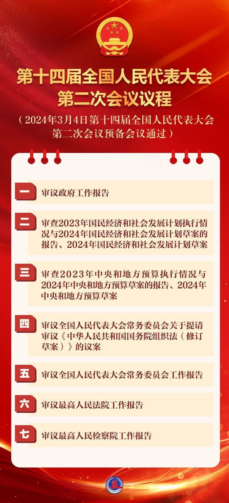 (2024年3月4日第十四屆全國人民代表大會第二次會議預備會議通過)