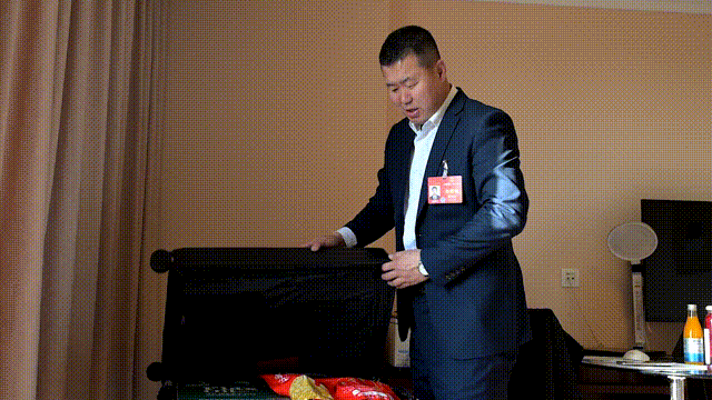 “這是我們?yōu)跆m察布市卓資縣的傳統(tǒng)名食卓資熏雞,這是我們自產(chǎn)的兩款亞麻籽油,它們都是我們當(dāng)?shù)赜刑厣霓r(nóng)畜產(chǎn)品,更是讓老百姓增收致富的產(chǎn)品。烏蘭察布有著豐富的資源,歡迎大家到烏蘭察布走一走、看一看。”薛志龍熱情地介紹起家鄉(xiāng)的特產(chǎn),并向全國人大代表發(fā)出邀請。