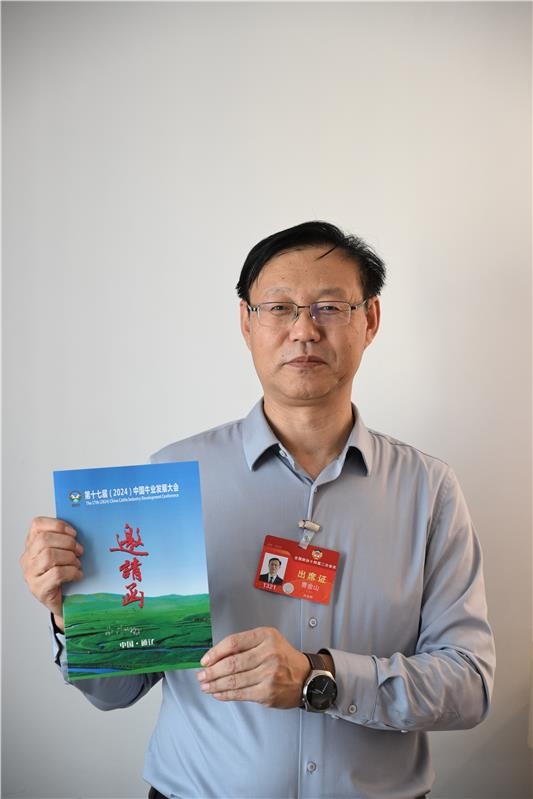 “2024年盛夏,我們將迎來(lái)第十七屆中國(guó)牛業(yè)發(fā)展大會(huì)。今年全國(guó)兩會(huì),我?guī)?lái)了這份來(lái)自通遼市的邀請(qǐng)函?!币?jiàn)到記者來(lái)訪,全國(guó)政協(xié)委員、通遼市副市長(zhǎng)曹金山從行李箱里拿出了精心準(zhǔn)備的中國(guó)牛業(yè)發(fā)展大會(huì)邀請(qǐng)函。