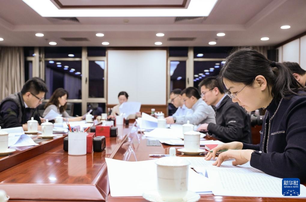 3月6日,財政部工作人員根據(jù)代表的意見建議對預(yù)算報告進行對照、研究。新華社記者李賀攝