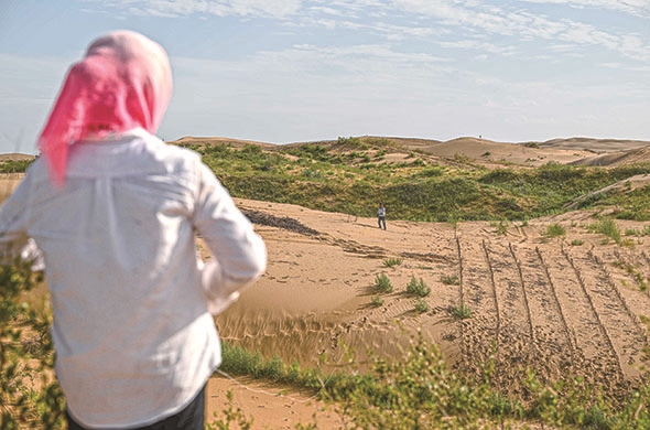 ??治沙戰(zhàn)役開展得更加轟轟烈烈,早在上世紀五六十年代,一場全民參與的防風(fēng)固沙戰(zhàn)役就在鄂爾多斯大地打響。當(dāng)?shù)匕傩諑资耆缫蝗?,一到春天就開始設(shè)置沙障、種植樹苗,涌現(xiàn)出殷玉珍、吳向東、曹扎娃等一大批治沙勞?!,F(xiàn)在,沙漠大數(shù)據(jù)分析技術(shù)、種質(zhì)資源技術(shù)、無人機飛播技術(shù)等現(xiàn)代治沙科技大大提高了生態(tài)治理水平,更進一步賦能綠色發(fā)展。