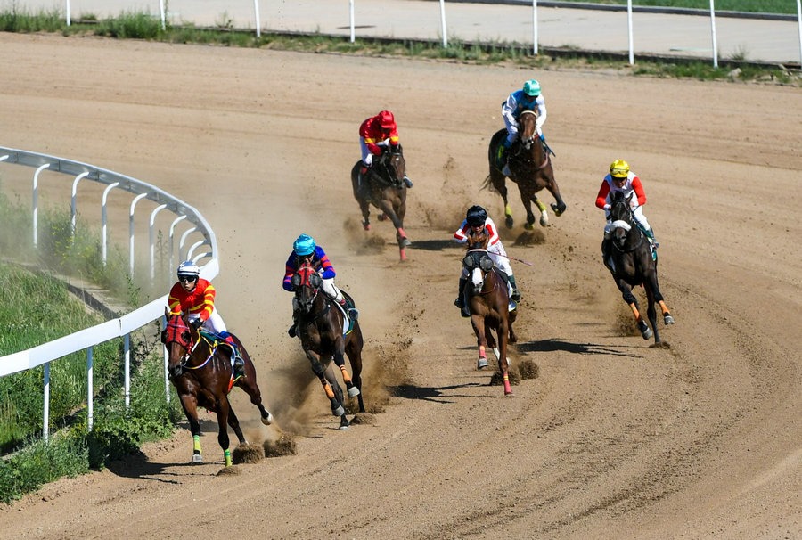 6月16日,中國速度賽馬積分賽暨內(nèi)蒙古呼和浩特速度賽馬常規(guī)賽第五個賽馬日在內(nèi)蒙古少數(shù)民族群眾文化體育運動中心開賽,當日先后進行了3歲及以上中國出生純血馬1000米、2歲純血馬1000米、2歲中國出生純血馬1000米、無限定走馬1200米、蒙古馬2000米賽事,蒙古馬3000米六場比賽,馬背上的速度競賽和場下精彩的演出給觀眾獻上一場精彩的視覺盛宴。(記者:孟和朝魯)