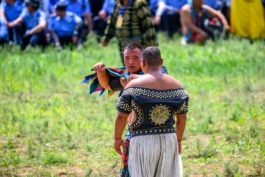 那達(dá)慕上搏克比賽瞬間