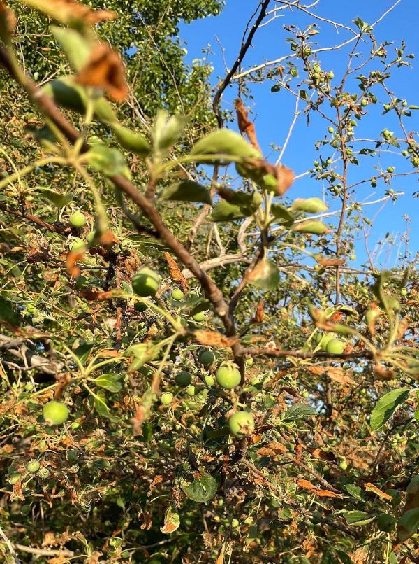 ??多年后,隨著條件改善,村里打上機井,大壩逐漸廢棄,壩下無人料理的果樹卻還年年結(jié)果。今年,又有不少綠色小果子掛在枝頭。馮玉寬每到夏天都要回來摘一點,帶回家曬果干?!斑@就是一種情結(jié)。小時候放暑假,我們孩子就來這吃果子,吃到肚脹……”