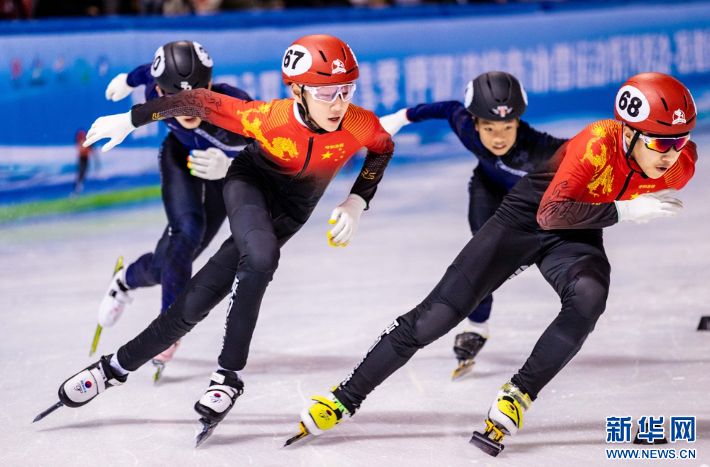 ??12月15日,參賽小選手在呼和浩特市冰雪運動系列活動短道速滑公開賽男子甲組500米比賽中。新華網(wǎng)發(fā)(丁根厚 攝)