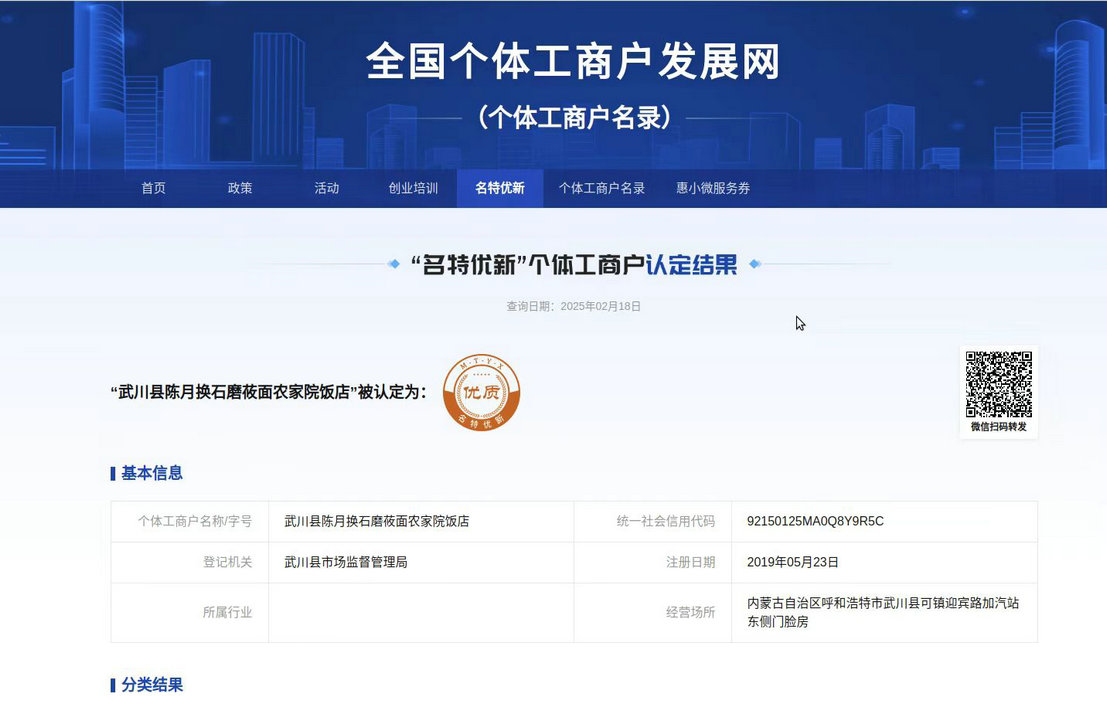 北疆新聞呼和浩特2月19日消息(記者 張鑫)近日,呼和浩特市首批27戶個體工商戶獲評全國“名特優(yōu)新”個體工商戶,覆蓋餐飲、批發(fā)零售、食品加工、居民服務(wù)等多個行業(yè)領(lǐng)域。