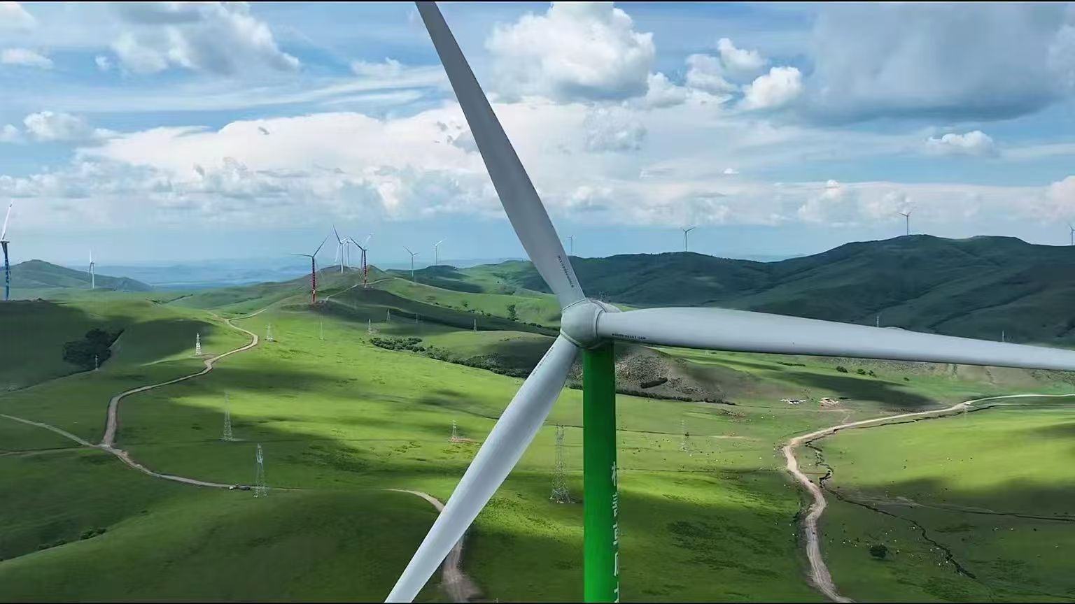 圖為中廣核興安盟300萬千瓦風(fēng)電項(xiàng)目場(chǎng)區(qū),目前該項(xiàng)目已經(jīng)全容量并網(wǎng)。